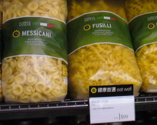 Also, "Messicani" is not a kind of Italian pasta. Google for it, and you'll only find it mentioned in British websites.